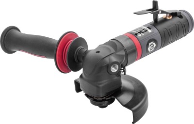 Пневматическая высокоскоростная углошлифовальная машина с максимальным диаметром диска 125 мм. Применяется в строительстве и металлообработке для резки, шлифования и зачистки изделий из камня, металла и других материалов. При работе обязательно использовать средства защиты рук, органов зрения и слуха, а при обработке металлов защитные перчатки, изготовленные из материалов с огнестойкой пропиткой.