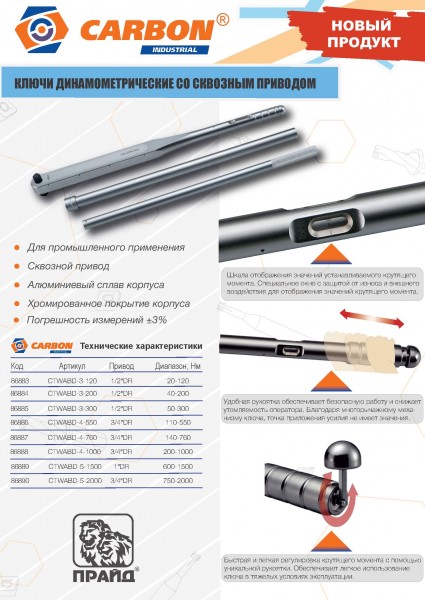 Carbon CTWABD-4-760 Ключ динамометрический алюминиевый со сквозным приводом, 3/4"DR, 140-760 Нм, погрешность пр.+/-3% CTWABD-4-760