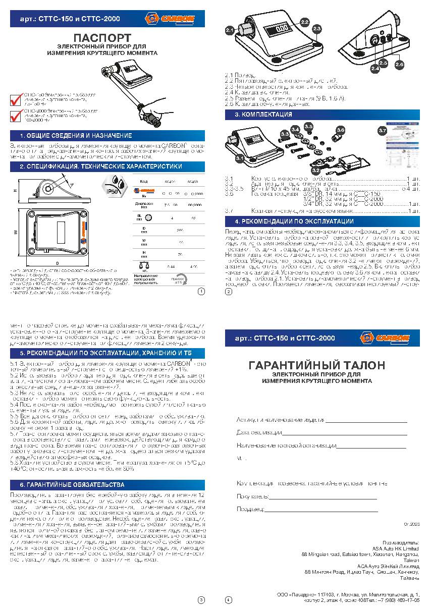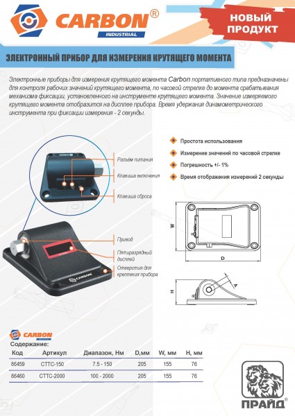 Carbon CTTC-150 Электронный прибор для измерения крутящего момента, 7.5-150 Нм CTTC-150
