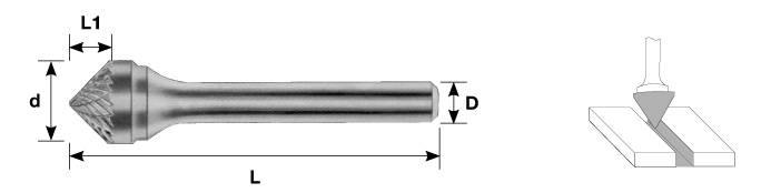 CRUBSK06120654-2 Борфреза твердосплавная коническая 90°, тип K, 12 мм, двойная насечка, хвостовик 6 мм, в боксе Carbon